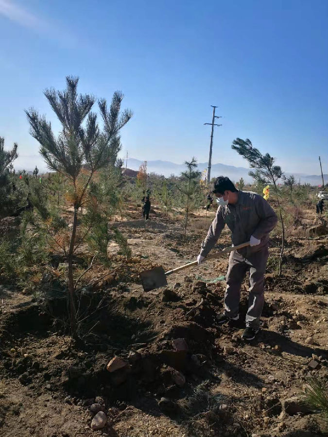 上午9点,“义务植树周”活动正式拉开帷幕,信远气膜的员工们卖力挥锹,干得热火朝天。因着一腔沸腾的热血,即使在气温十多度的深秋,他们也丝毫感受不出秋天的凉意。